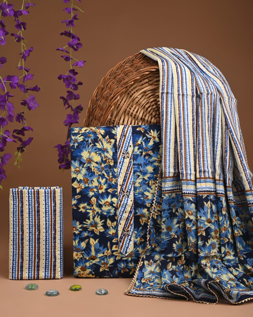 Make a graceful statement in comfort and style with these Exclusive Cotton Suits – a must-have for those who appreciate understated beauty with traditional accents.