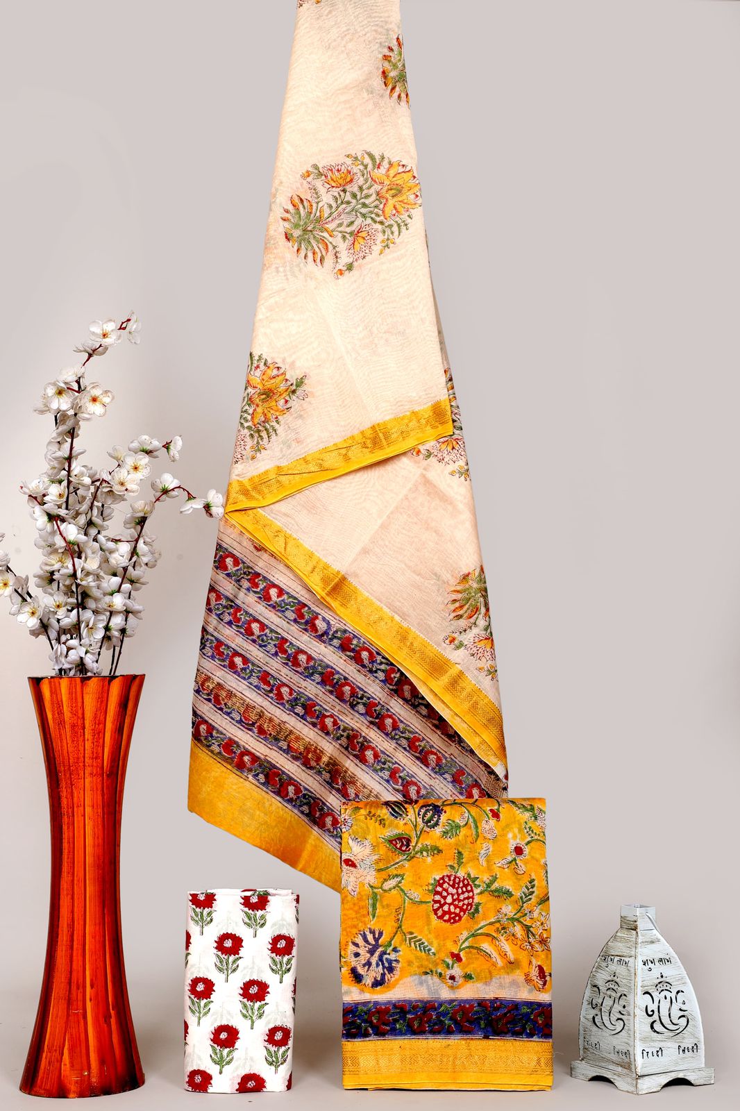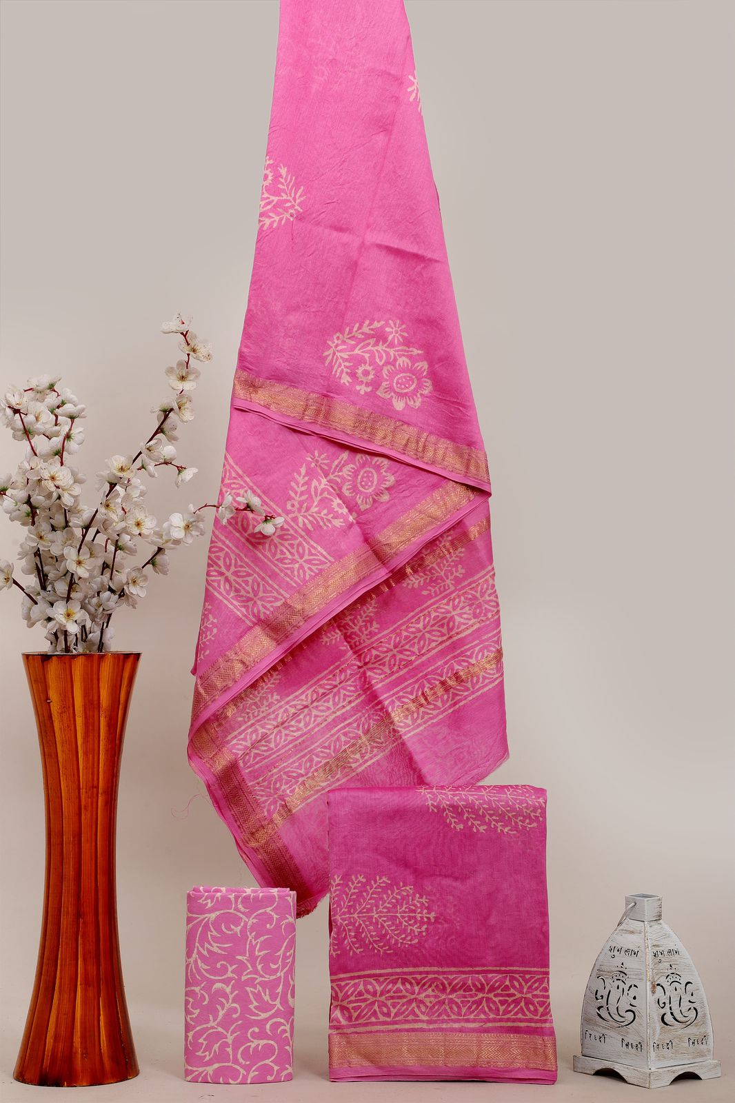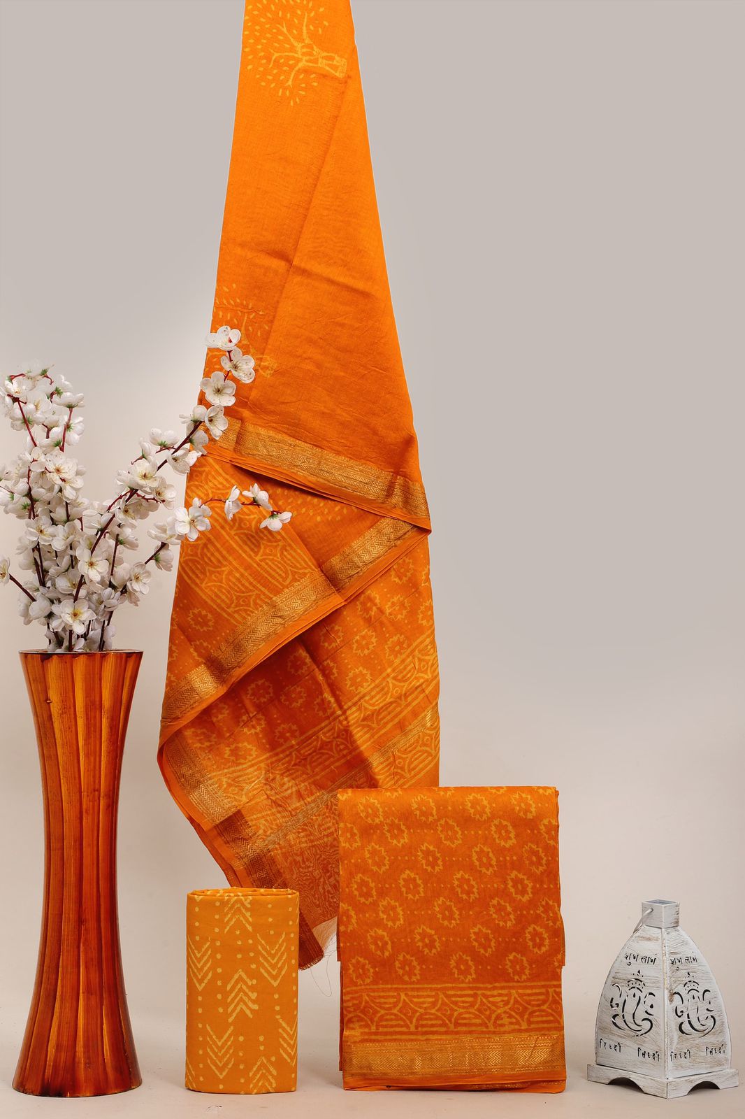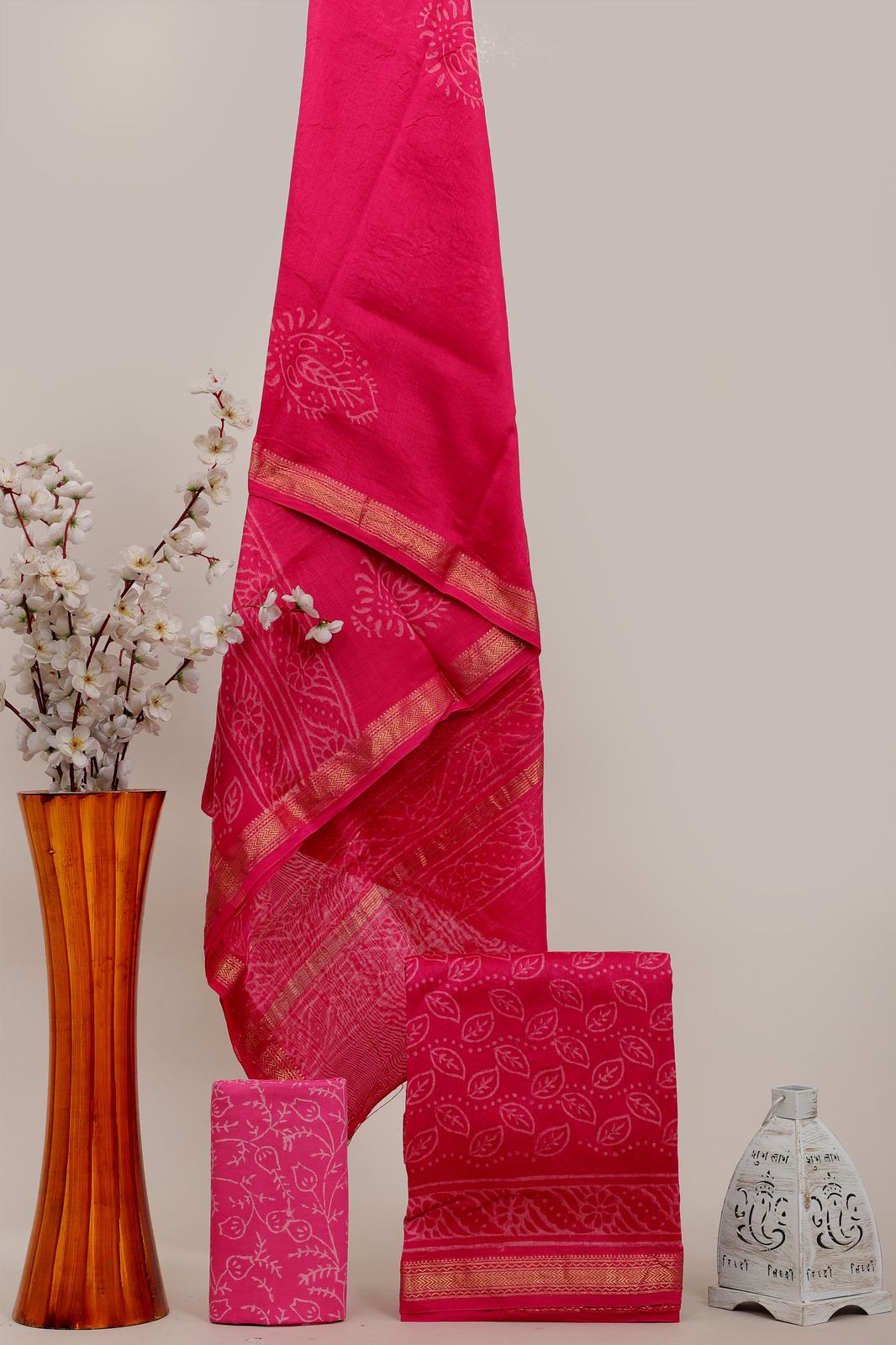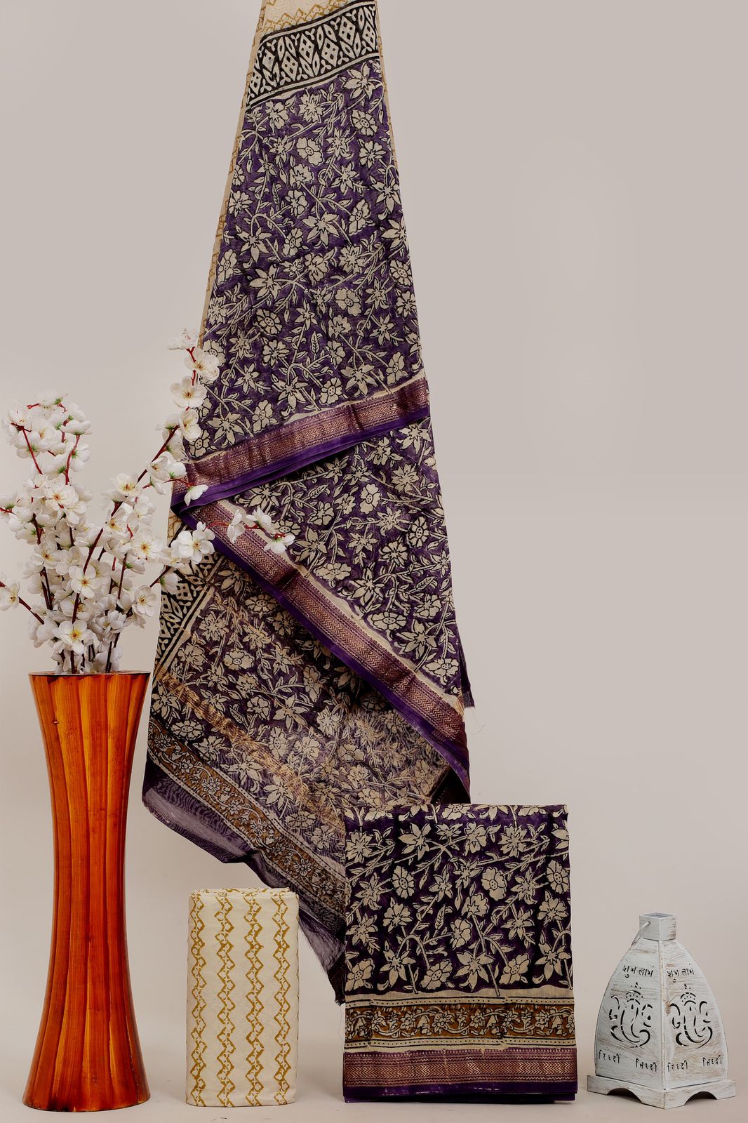 - Eco-Friendly Dyes, Hand Block Printed Silk Suit: Made with natural, skin-friendly dyes that are gentle and sustainable.