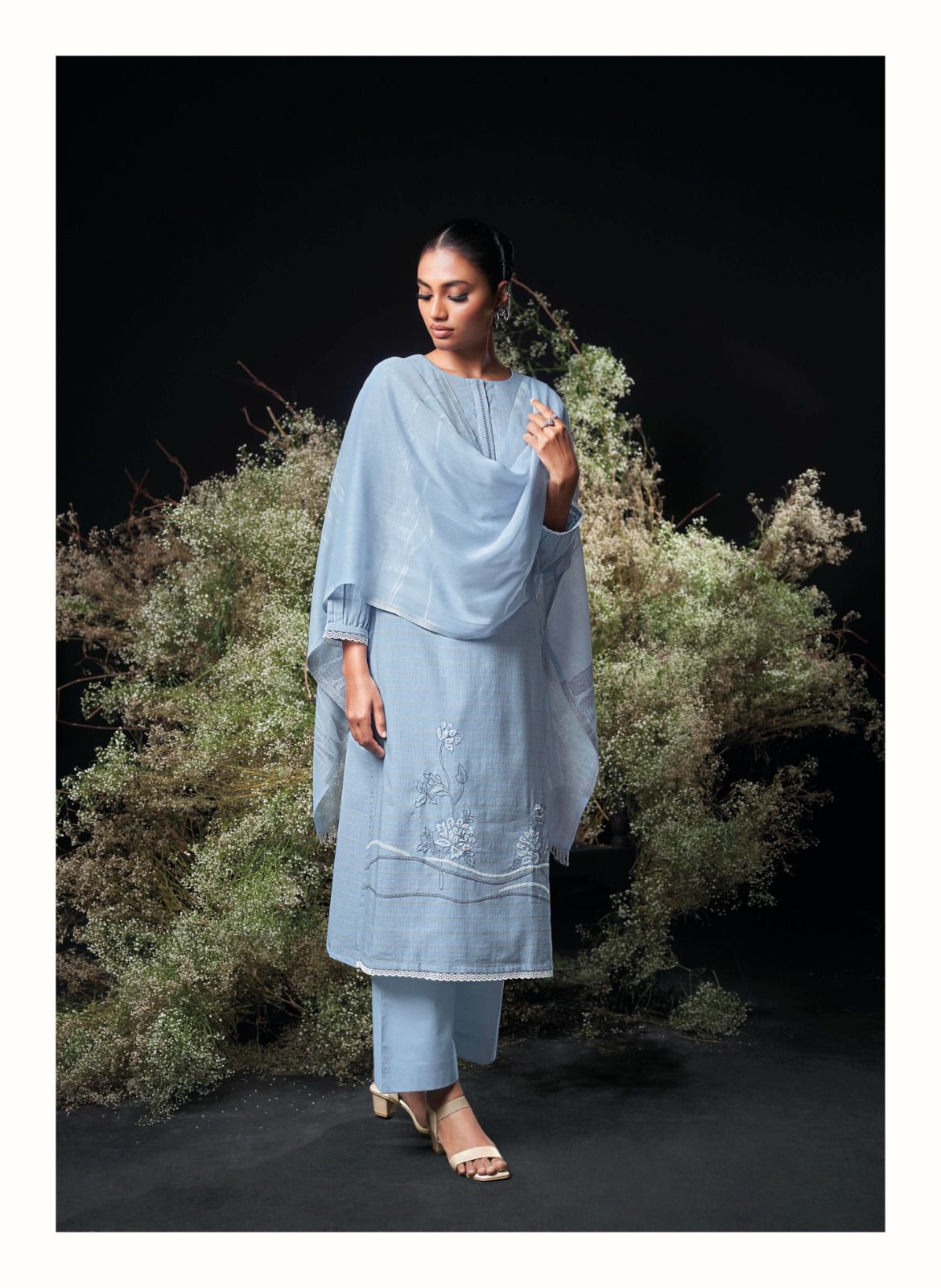 Top – premium cotton pattern dobby solid with embroidery lace on daman and sleeves