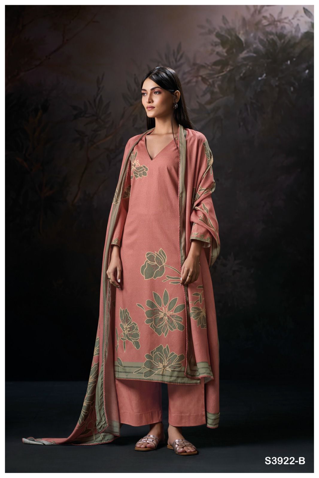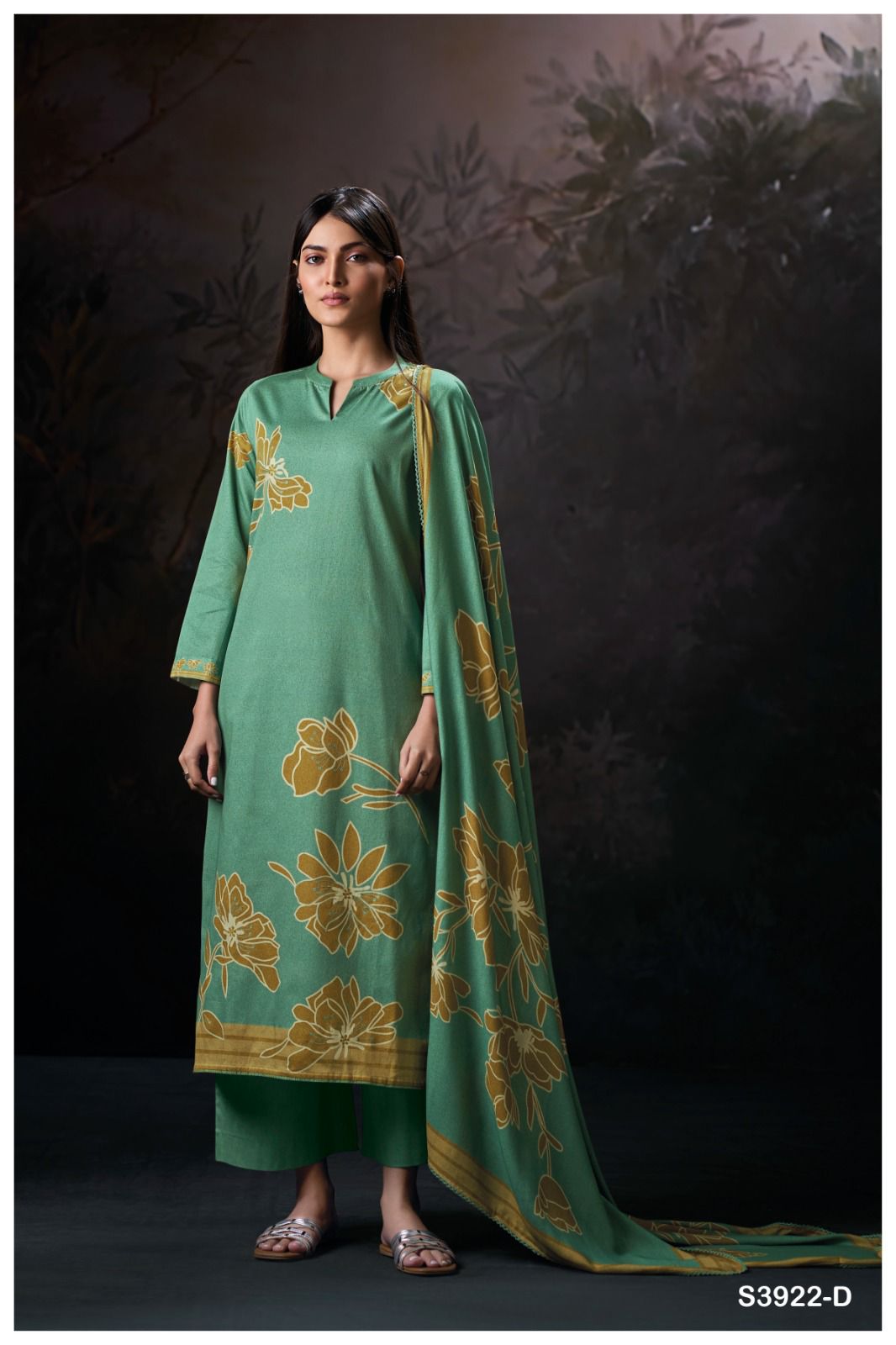 GANGA – EKISHA 3922 | Premium Printed Corduroy with Hand Embroidery