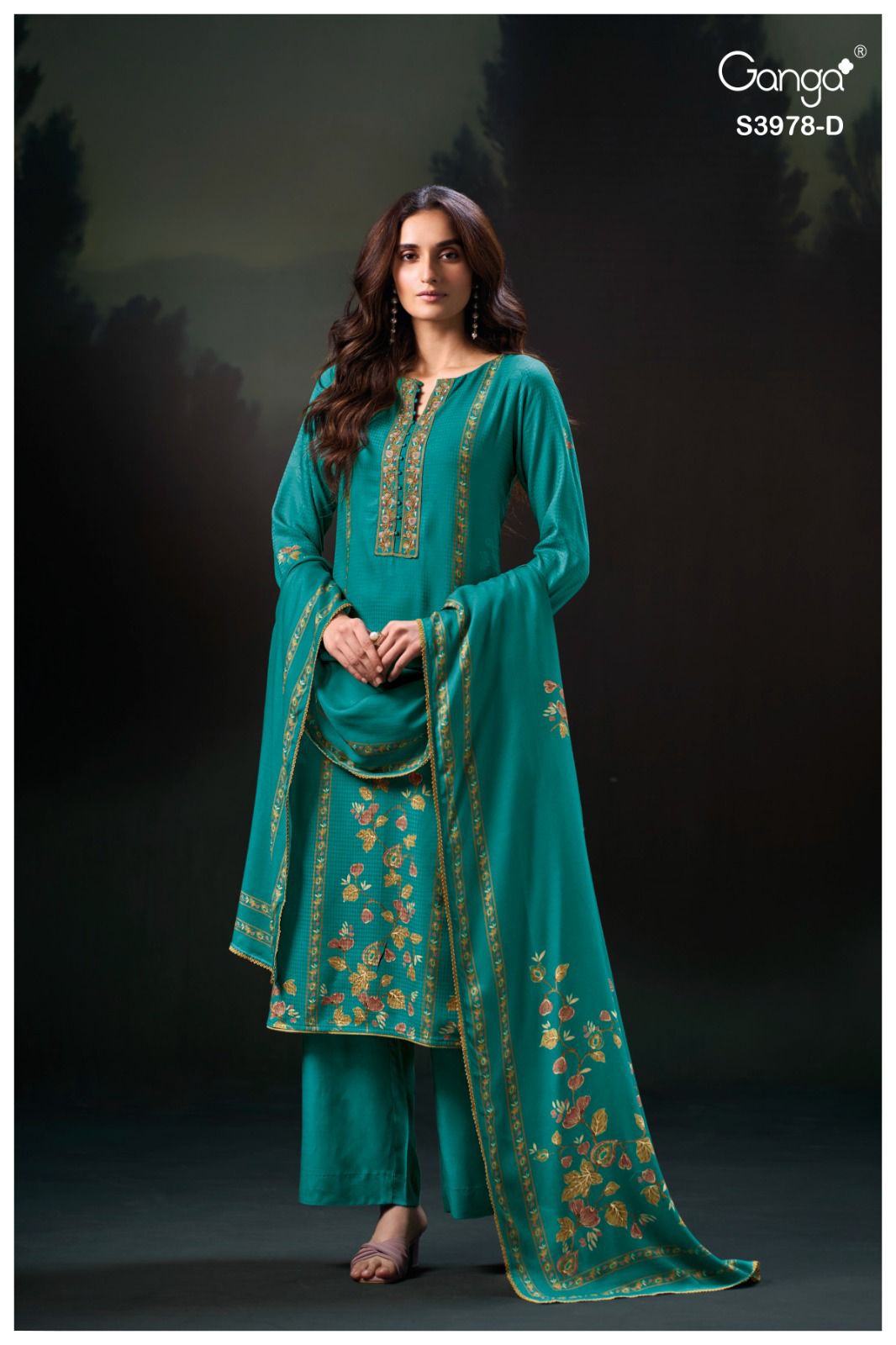 Top – premium pure Wool Pashmina jaquard printed with embroidery button work embroidery lace on daman