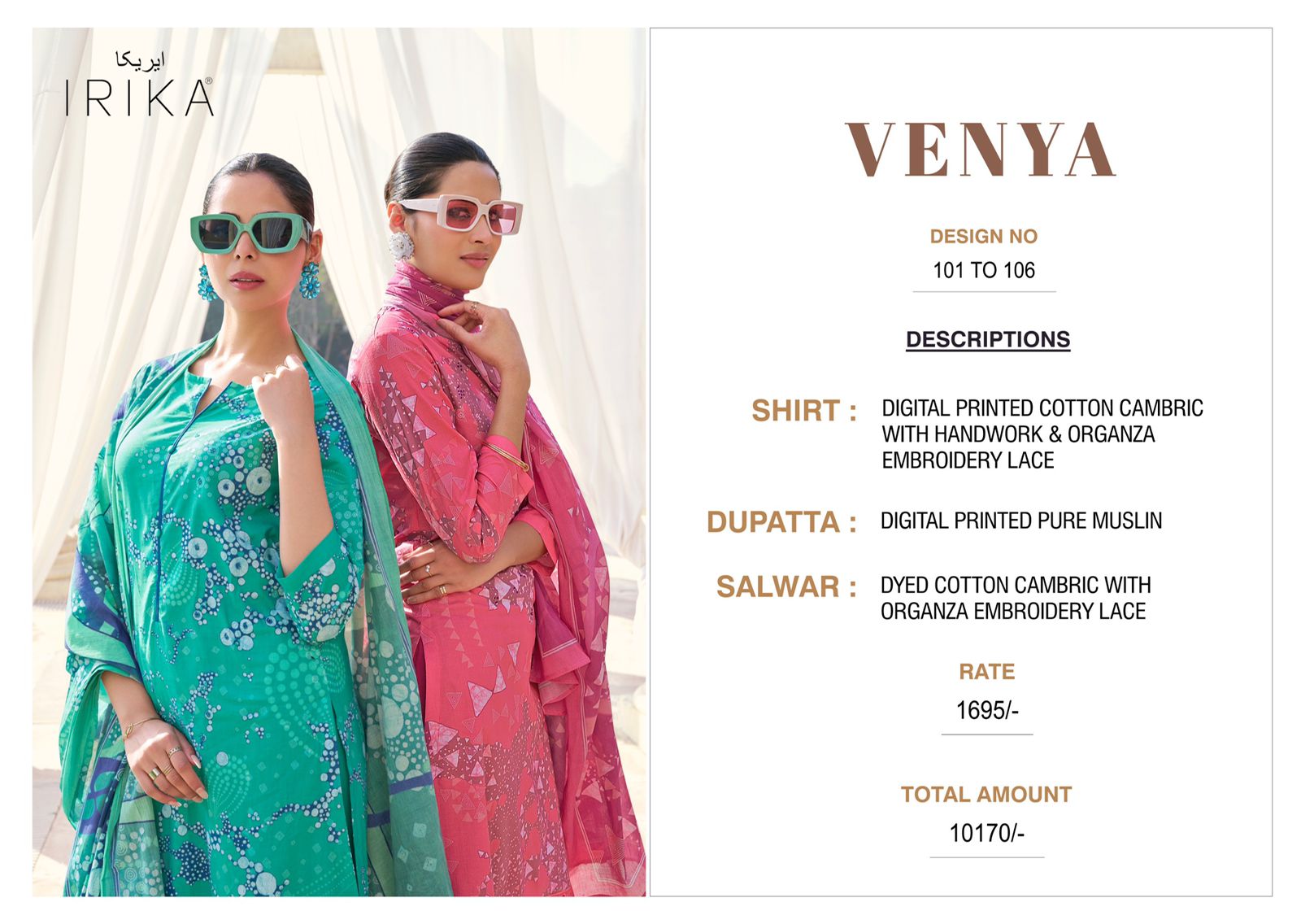 Top – Digital printed cotton Cambric with handwork & organza embroidery lace
