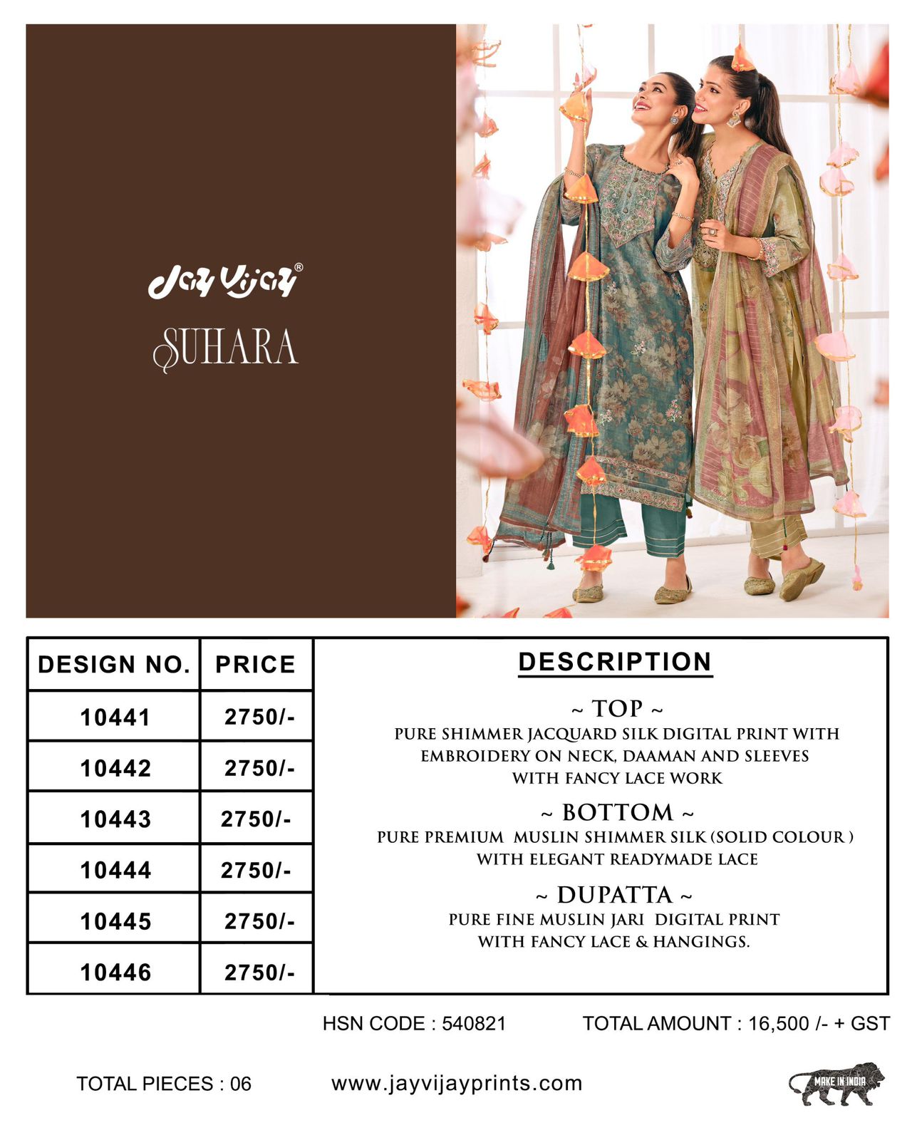 Bottom – pure premium muslin shimmer silk (solid colour) with Elegant ready made lace
