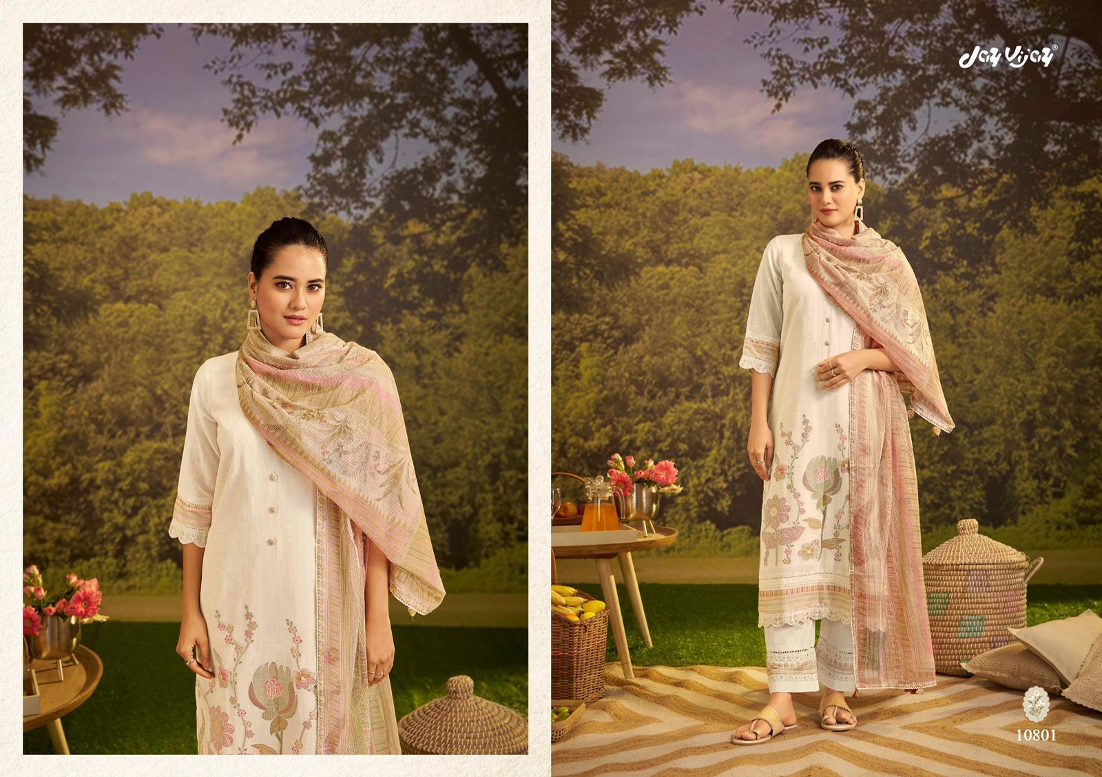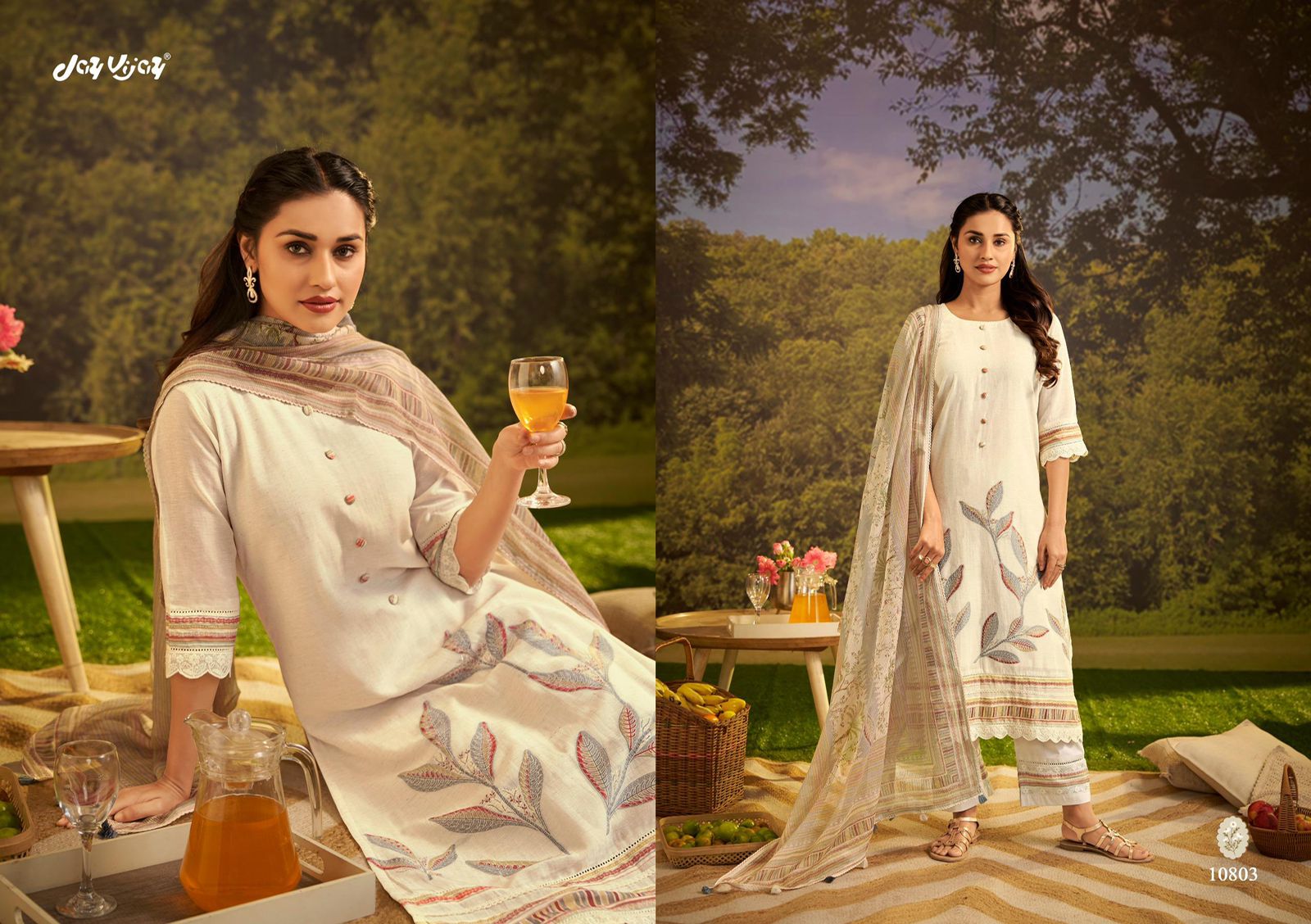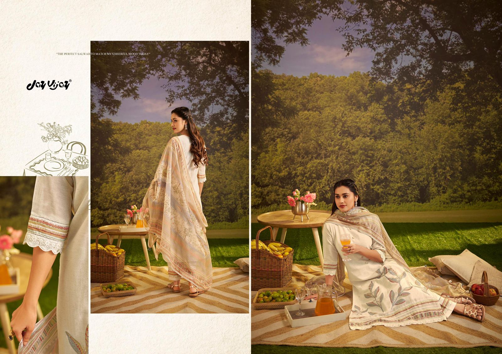 Bottom – pure cotton ( solid colour) with embroidery & print patti