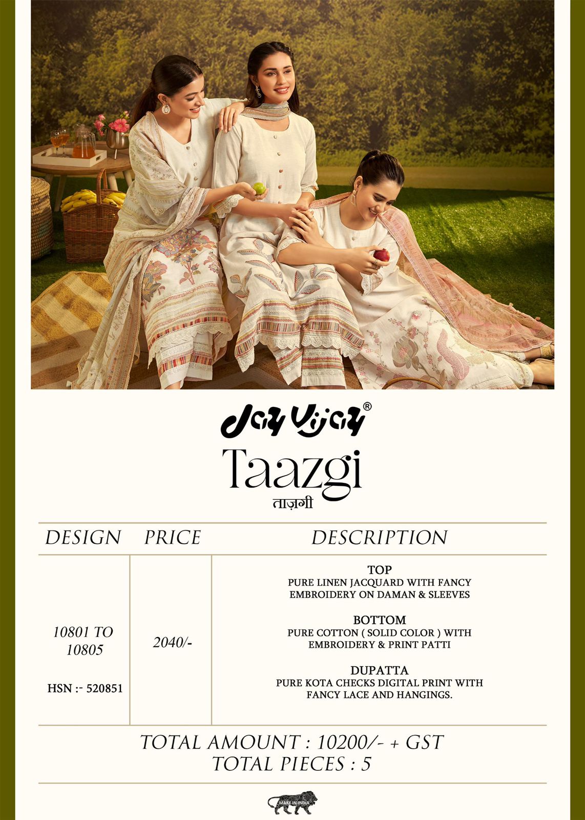 Top – Pure linen jacquard with fancy embroidery on daman & sleeves