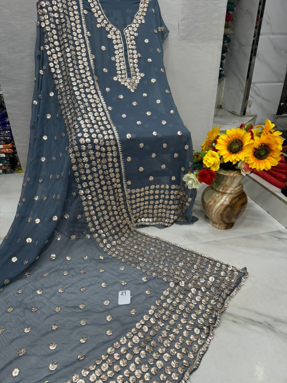 🌟 Karachi Gotta – Original Pakistani Chiffon Suit with Santoon Bottom