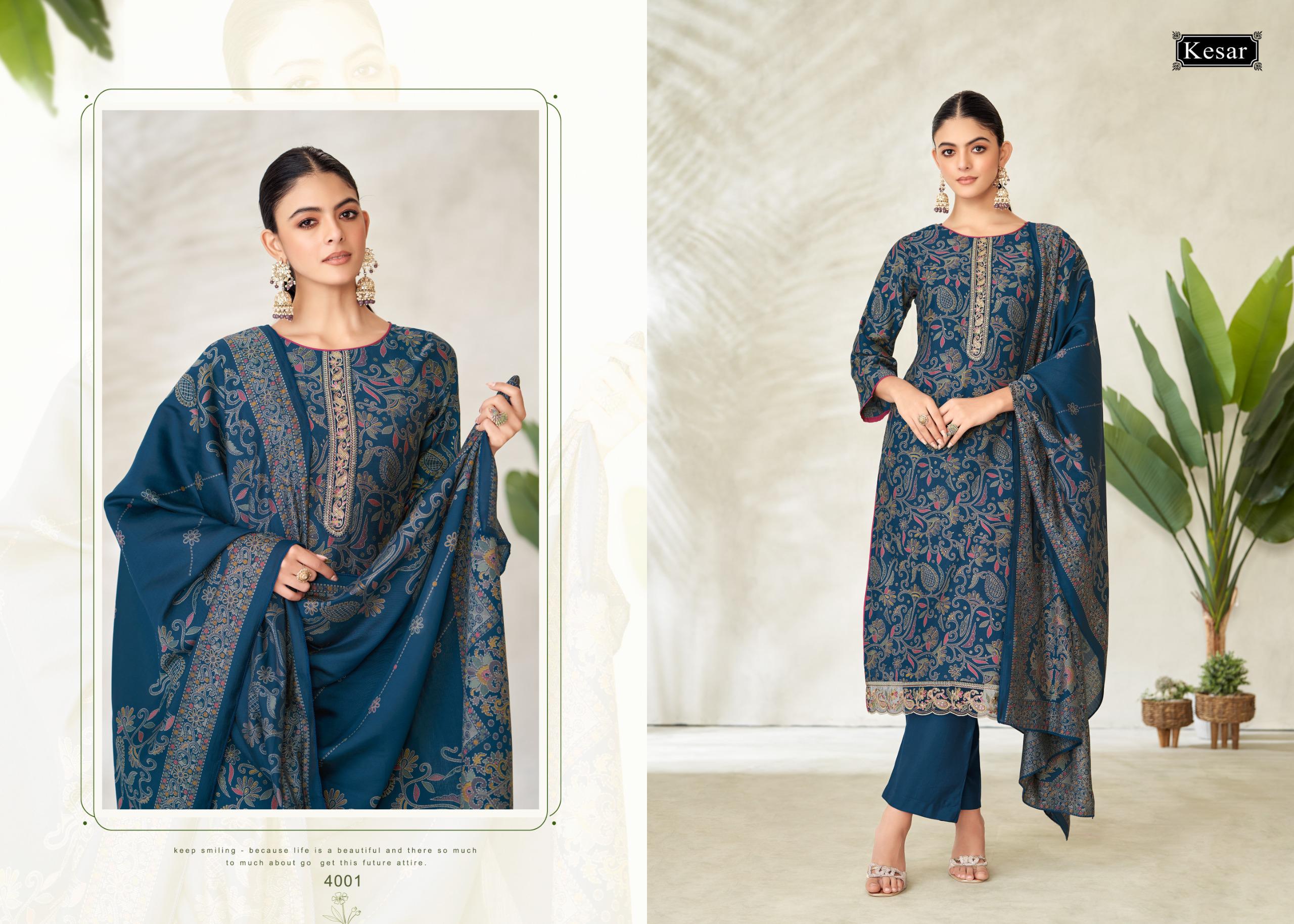 Kesar’s Latest Pashmina Suits combine winter comfort with classic ethnic elegance – featuring soft fabric, graceful prints, and sophisticated designs.