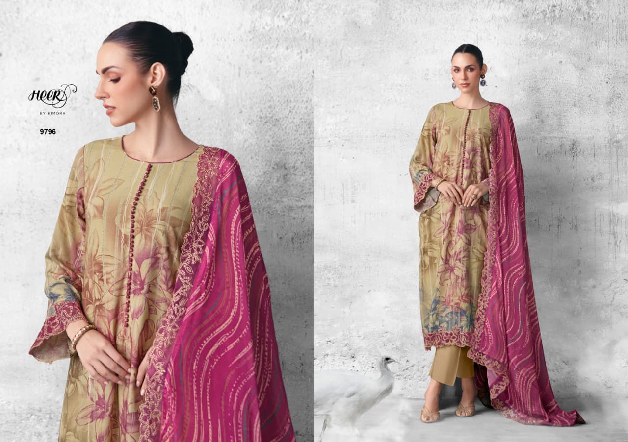 The Kimora Latest Muslin Suits collection offers the perfect blend of comfort and style. Crafted from premium muslin fabric, known for its lightweight and breathable qualities, these suits are perfect for warm weather and casual outings. Featuring beautiful prints and elegant designs, they bring a fresh and contemporary feel to your ethnic wardrobe.