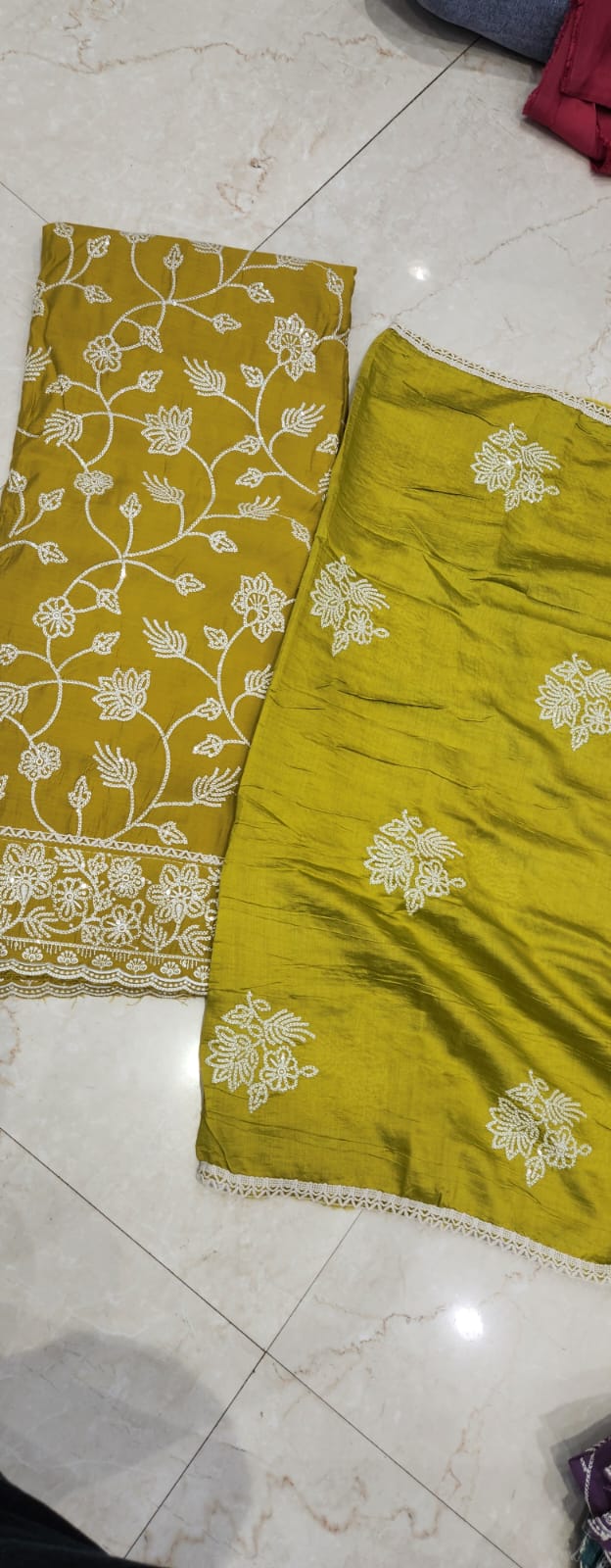 Step into timeless elegance with this Modaale embroidered suit set, designed for the modern woman who appreciates classic details and contemporary comfort. This unstitched ethnic outfit is enhanced with delicate embroidery and comes with a soft, flowing muslin dupatta featuring elegant work that completes the look.