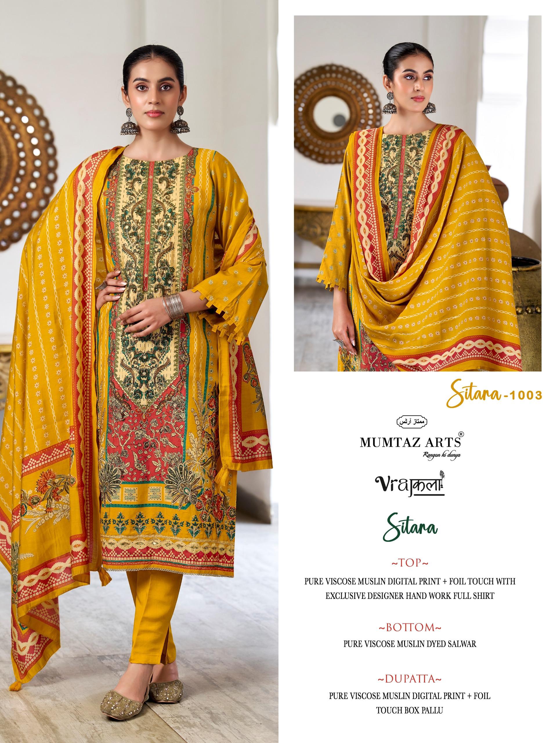 *PURE VISC MODAL MUSLINE DIGITAL & FOIL & GOLD PRINT WITH FANCY HANDWORK KHATLI WORK*