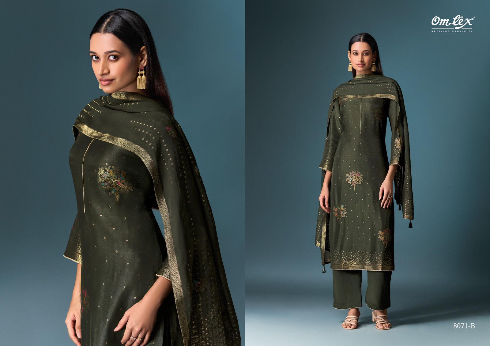 - Rich Color Choices, Omtex Ladies Silk Suits – Available in classic and trending shades like pastel pink, deep maroon, royal blue, and gold.