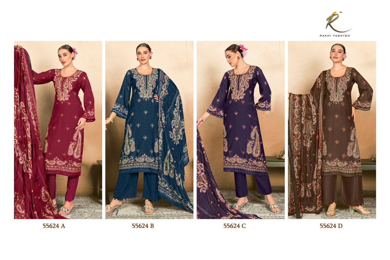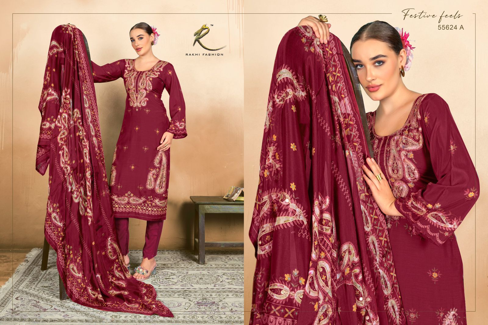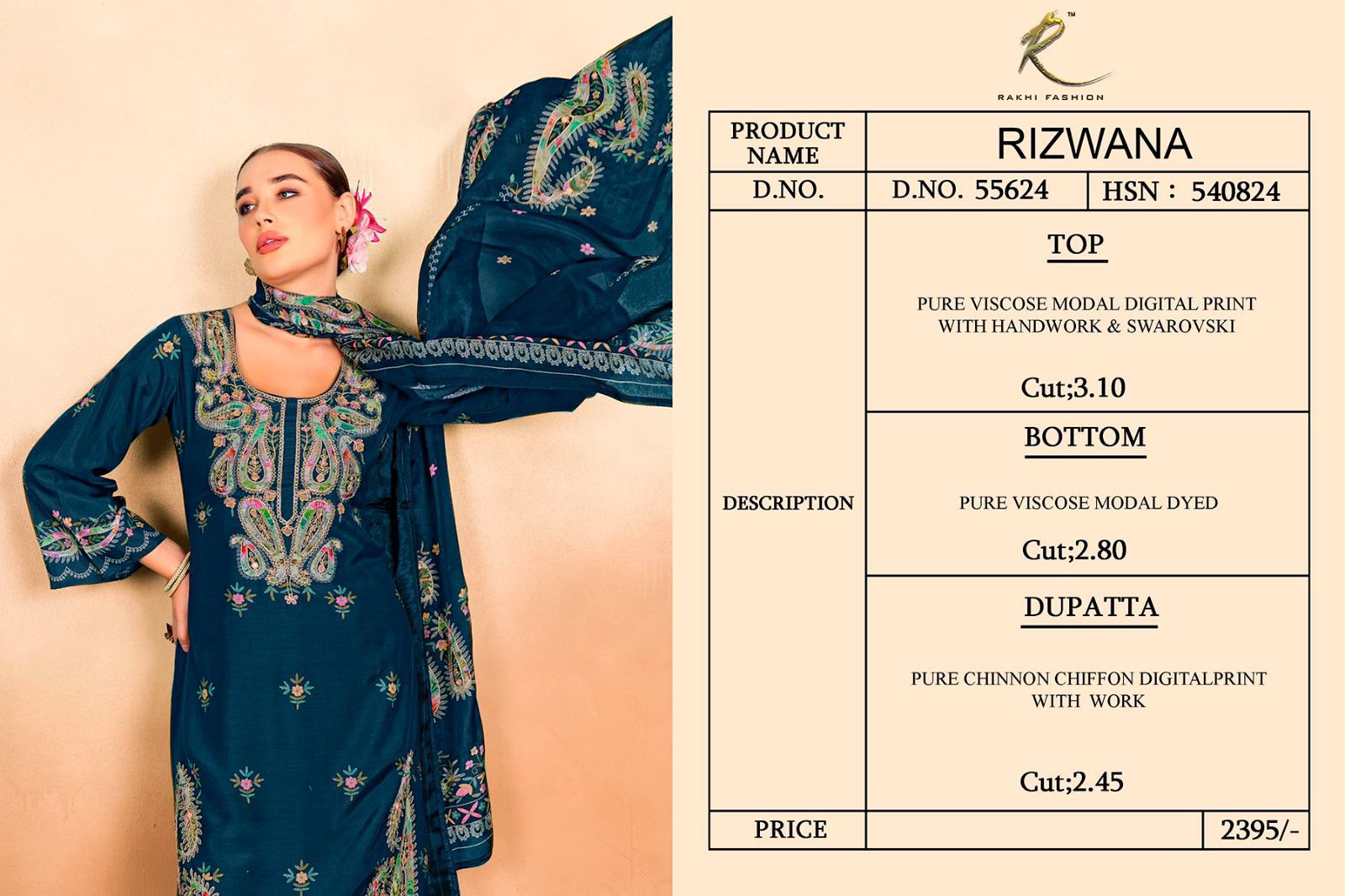 Rakhi Rizwana pure viscose modal digital print with handwork & Swarovski