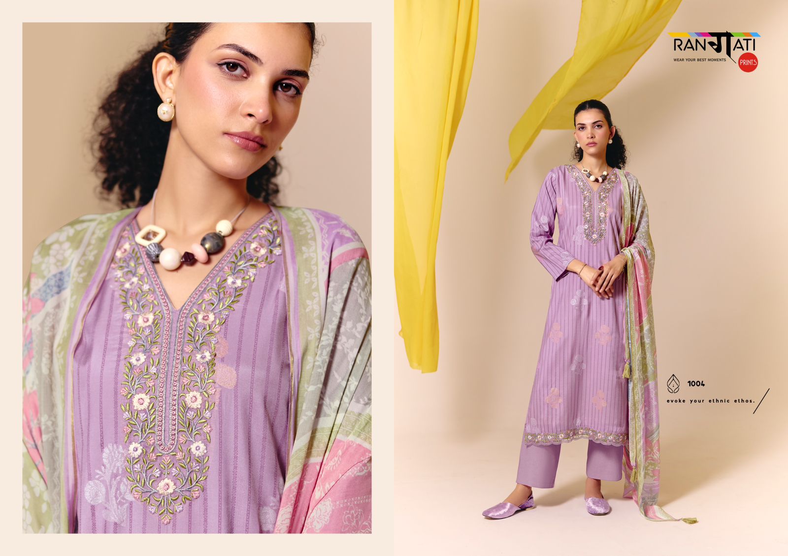 π*Top*: *Viscose Muslin Digital print With V-neck & daman Emb*