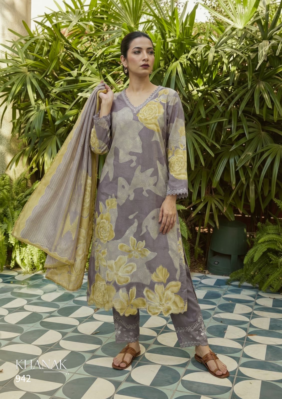 Bottom – Heavy Cotton dyed emb plazzo with threadle patch work