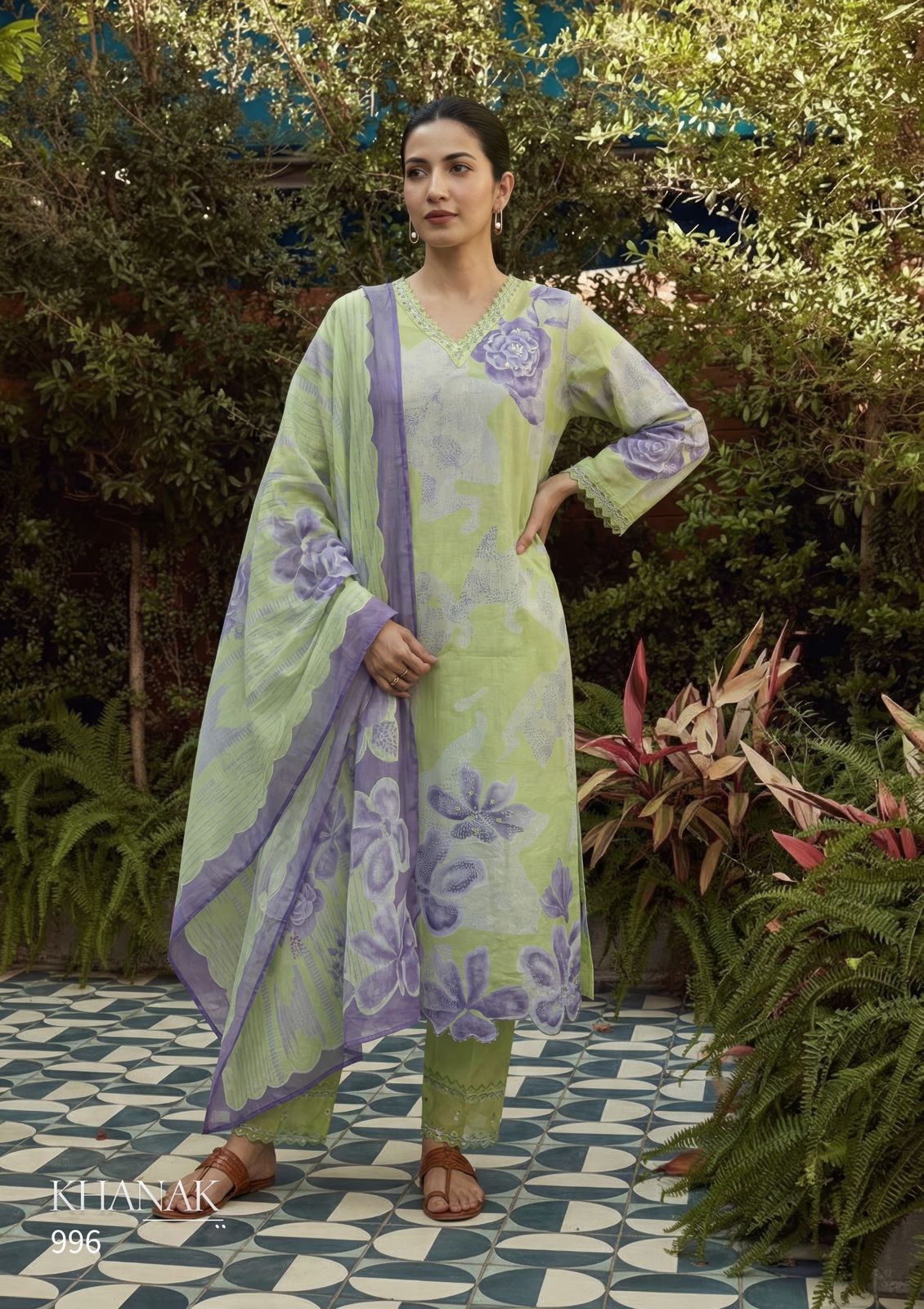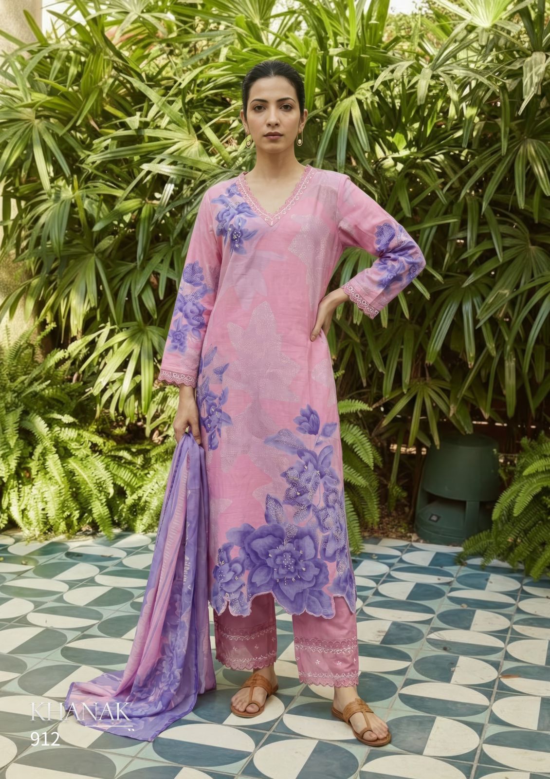 Top – Pure Cotton lawn digital print with hand work and threadle daman with silk dyed embroidery in neck and sleeve
