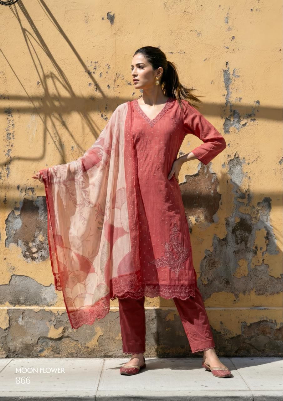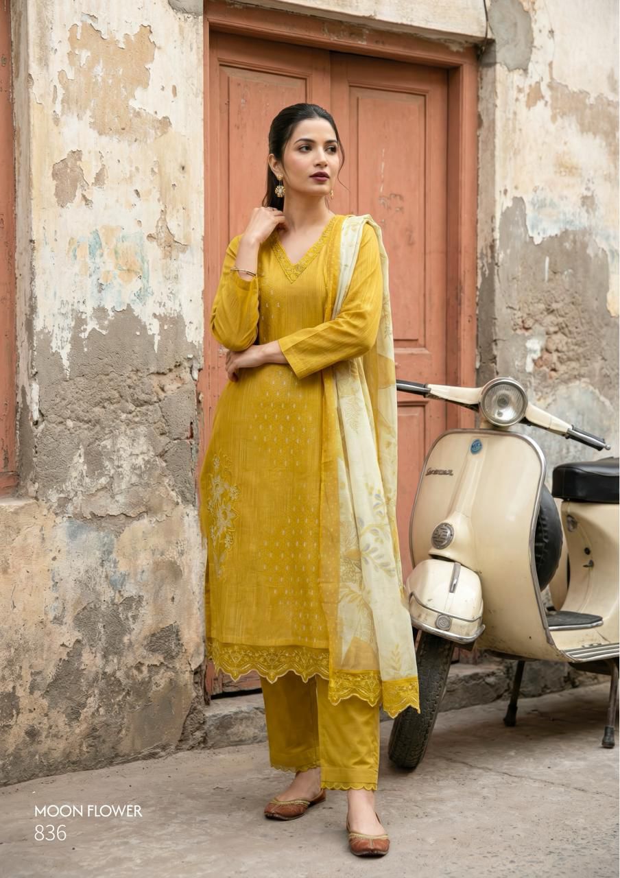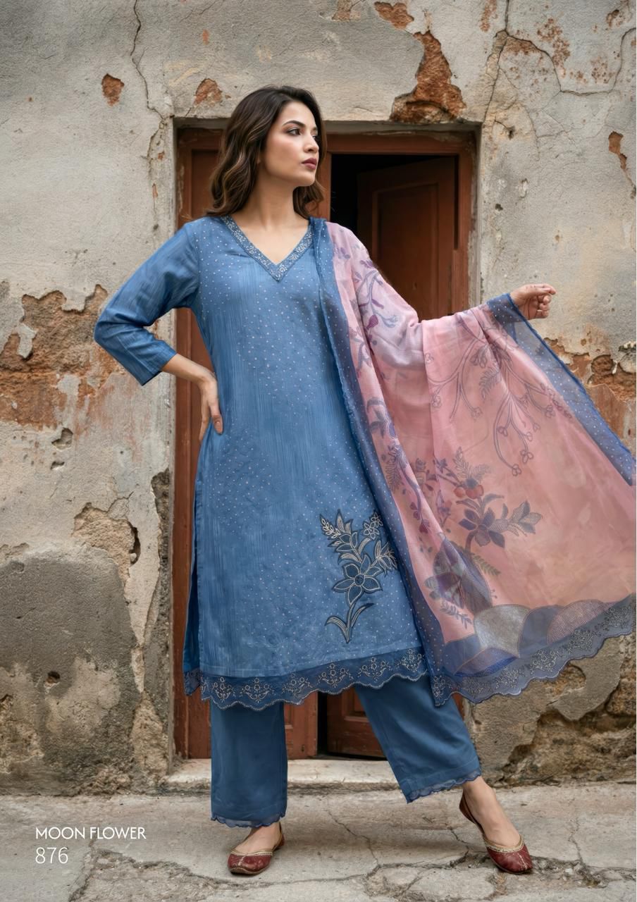 Top – Pure Cotton lawn digital print with hand work and silk dyed embroidered neck Daman & emb sleeves with fine threadal. Buta patch