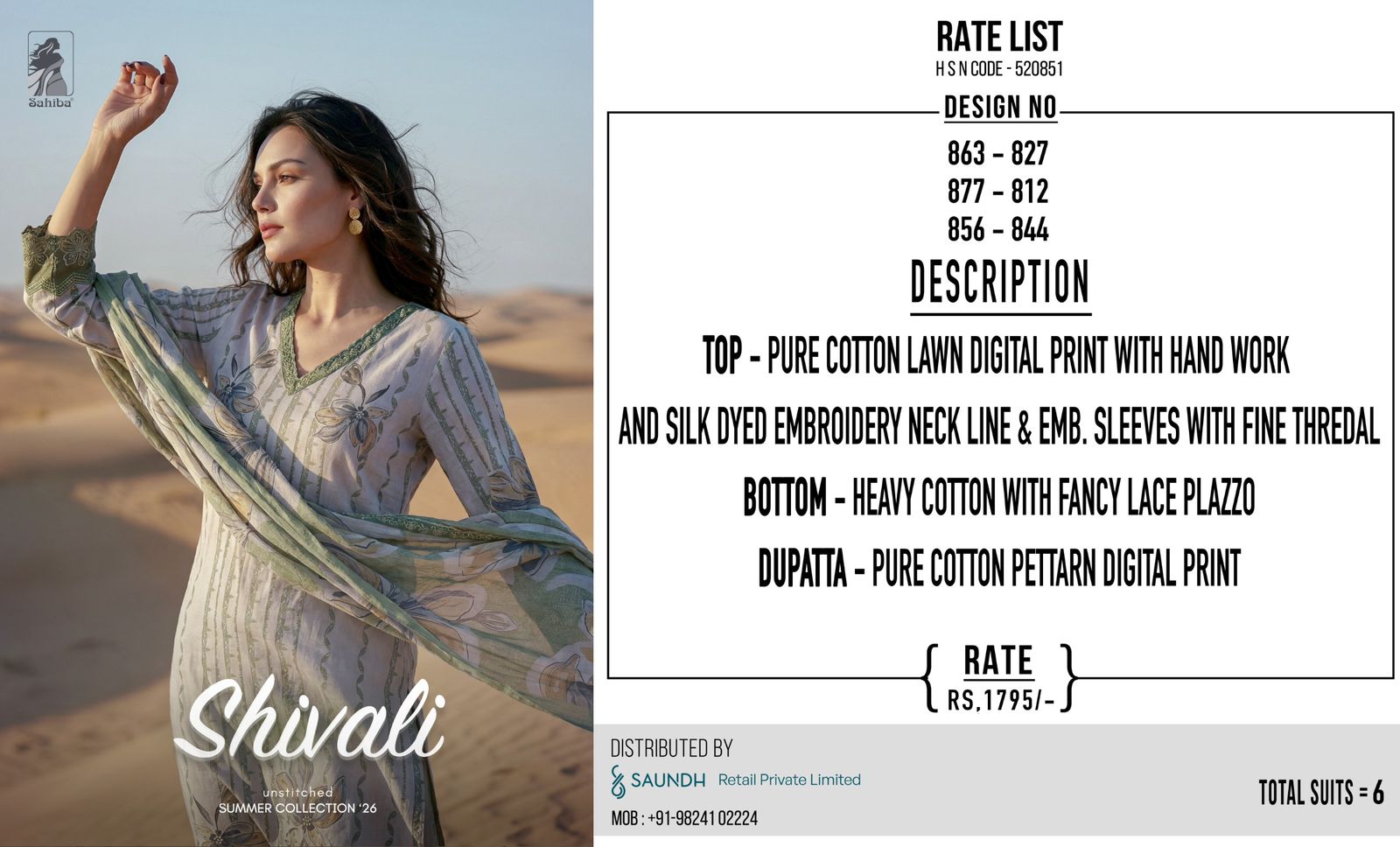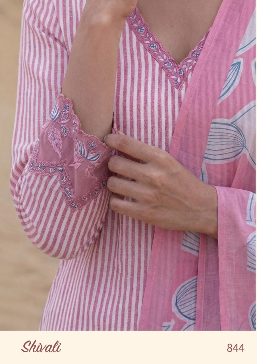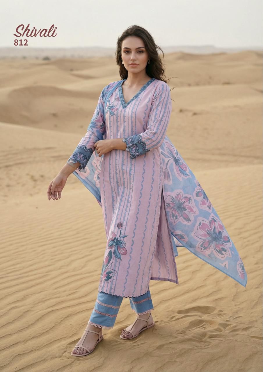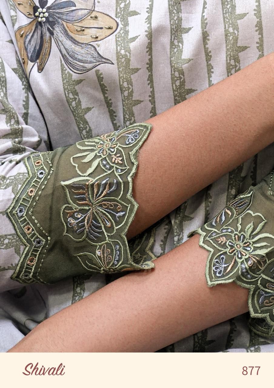 Top – Pure Cotton lawn digital print with hand work and silk dyed embroidery neck line and emb sleeves with fine thradl