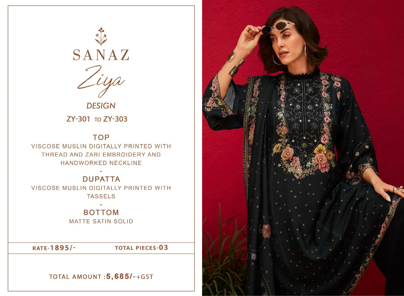 Sana Ziya muslin ladies suits wholesalers