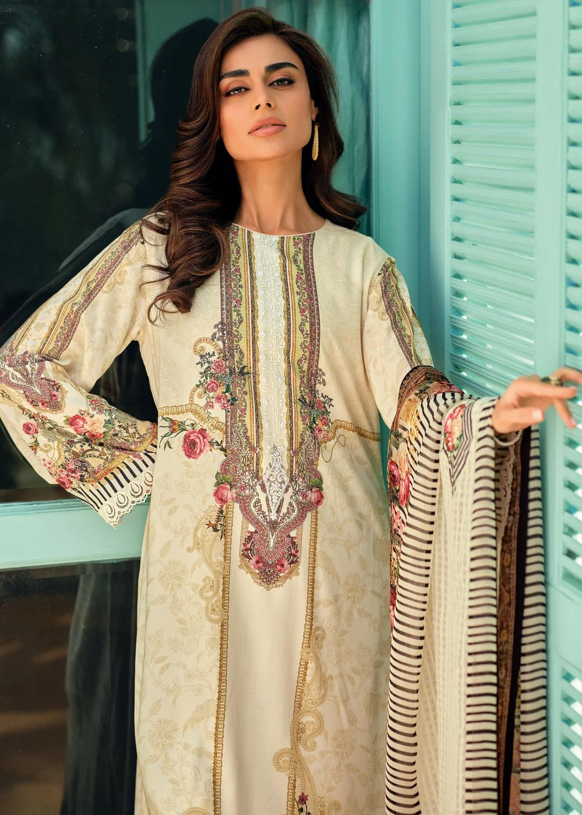 Top – premium cotton Digitally Printed with embroidery hand work and lace