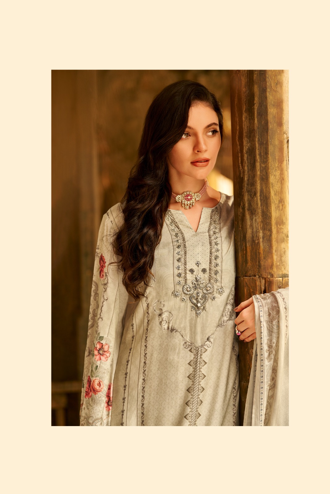 Varsha Mian modal satin digitally printed with hand work with lace