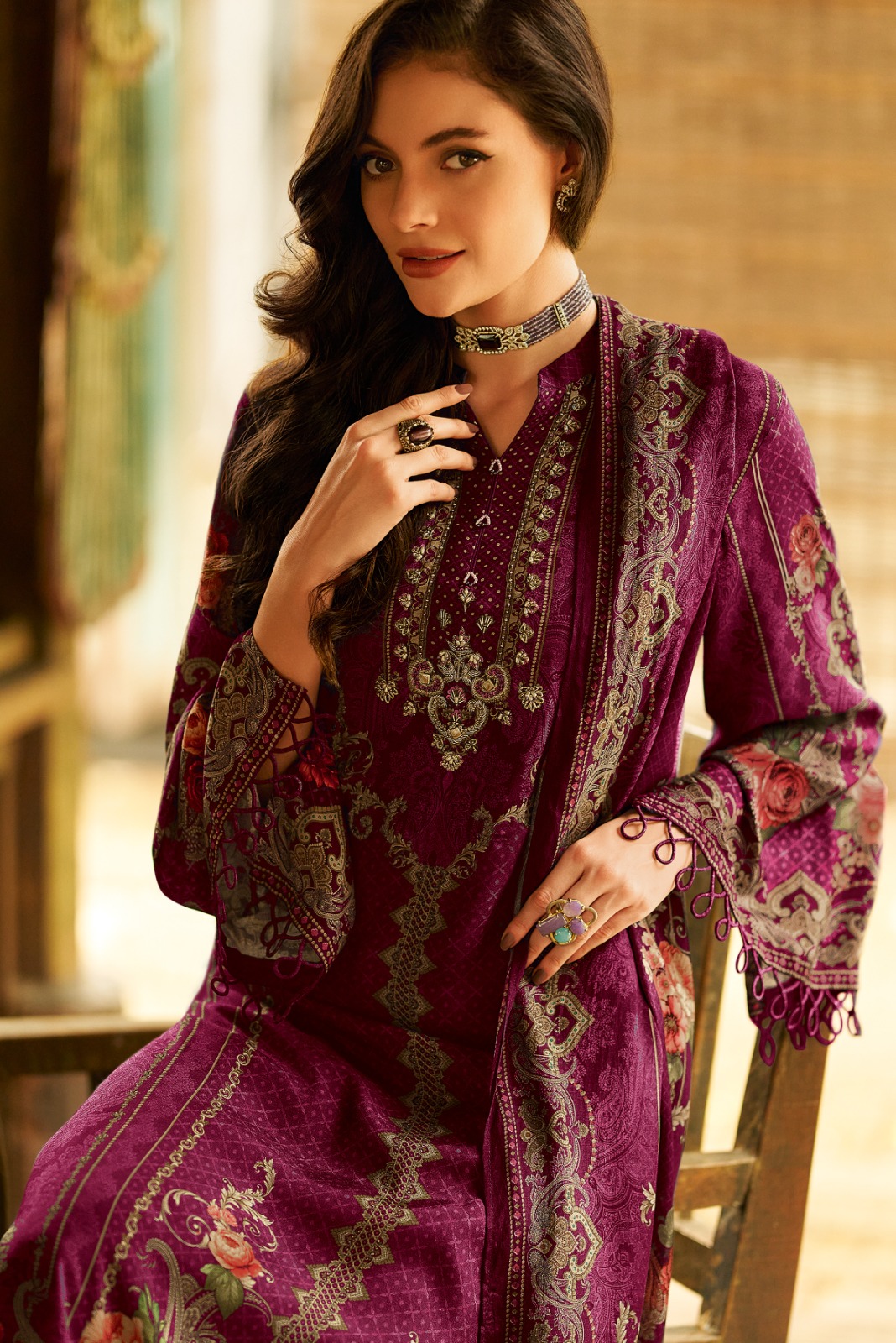 Be the first to review “Varsha Mian modal satin digitally printed with hand work with lace”