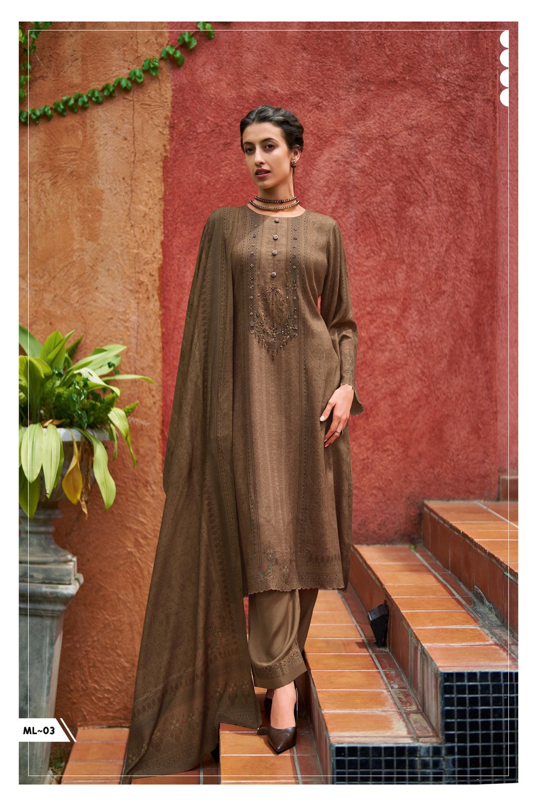•  Rich Winter Hues, Varsha Suits Pashmina Fabric – Available in deep tones like wine, olive, rust, navy, mustard, and mauve.