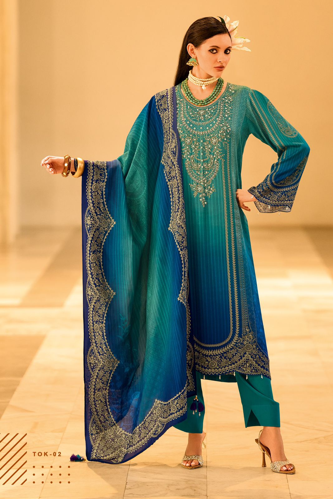 Top – viscose Muslin Digitally Printed with hand work